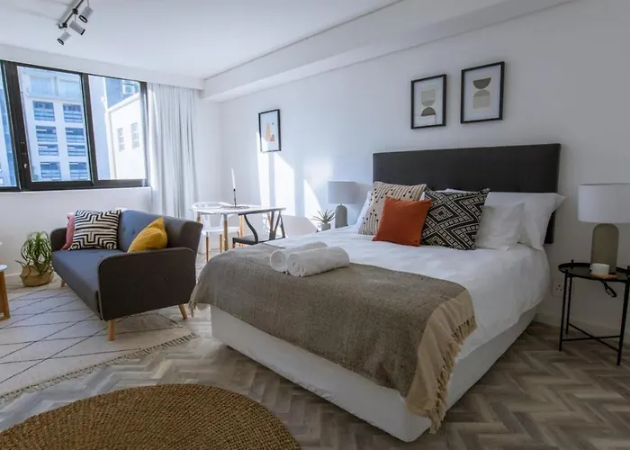 Overlooking the mountain, the 1-room Stylish, Modern, Walk To Restaurants And Cbd Apartment Cape Town is only 11 minutes' walk from the Bo-Kaap Museum in Cape Town. This 55 m² apartment is situated merely 1.3 km from Cape Town train station and not far from Dorp bus station.